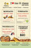 Stop by any of the 3 locally owned I Heart Mac & Cheese locations in Southern Colorado and dig into our in-store weekday specials: