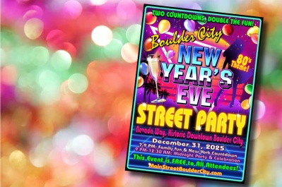 Main Street Boulder City will be hosting a totally rad New Year’s Eve Party on Wednesday, December 31 from 7:00PM to 12:30AM. The fun kicks off with DJ Mike Pacini spinning tunes from the 80s to get the party going. At 9:00PM will be the “kiddie countdown” for the young revelers. Beginning at 9:00PM and continuing until 12:30AM, adult (21+) revelers can enjoy a midnight toast and balloon drop.