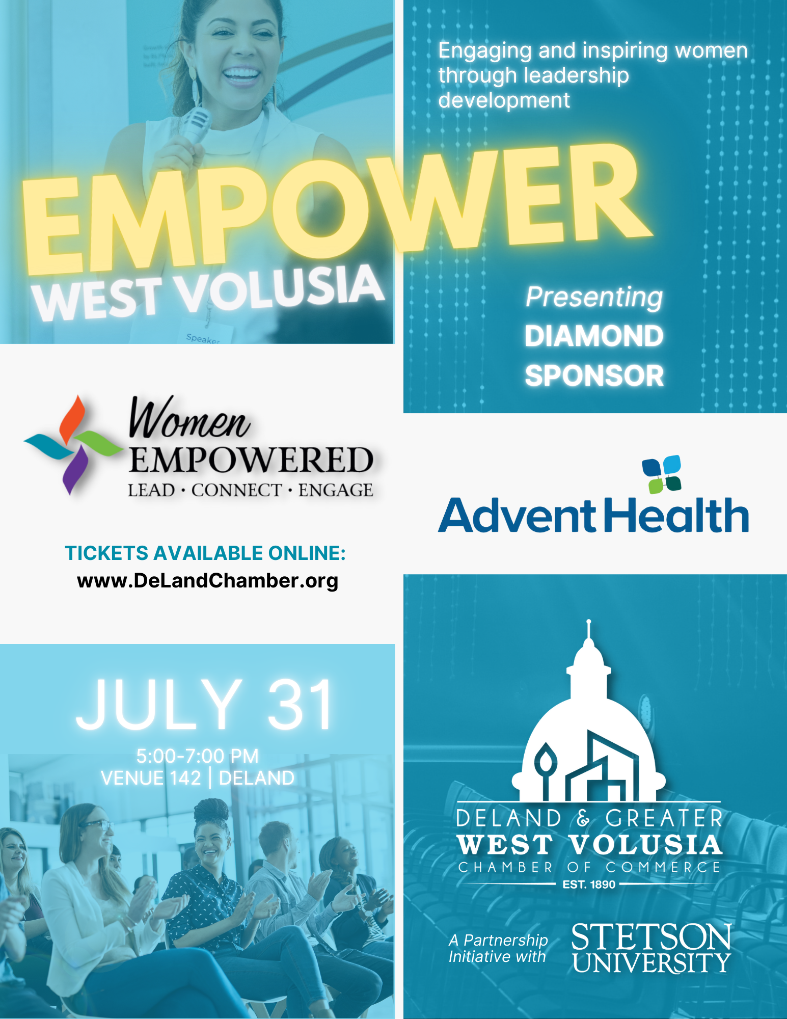 EMPOWER West Volusia will be held this year on July 31, 2025, from 5:00-7:00 PM at Venue 142 in historic downtown DeLand. Join us for an evening of cocktails and hors d’oeuvres, story sharing, laughter, and empowerment. Everyone is welcome!