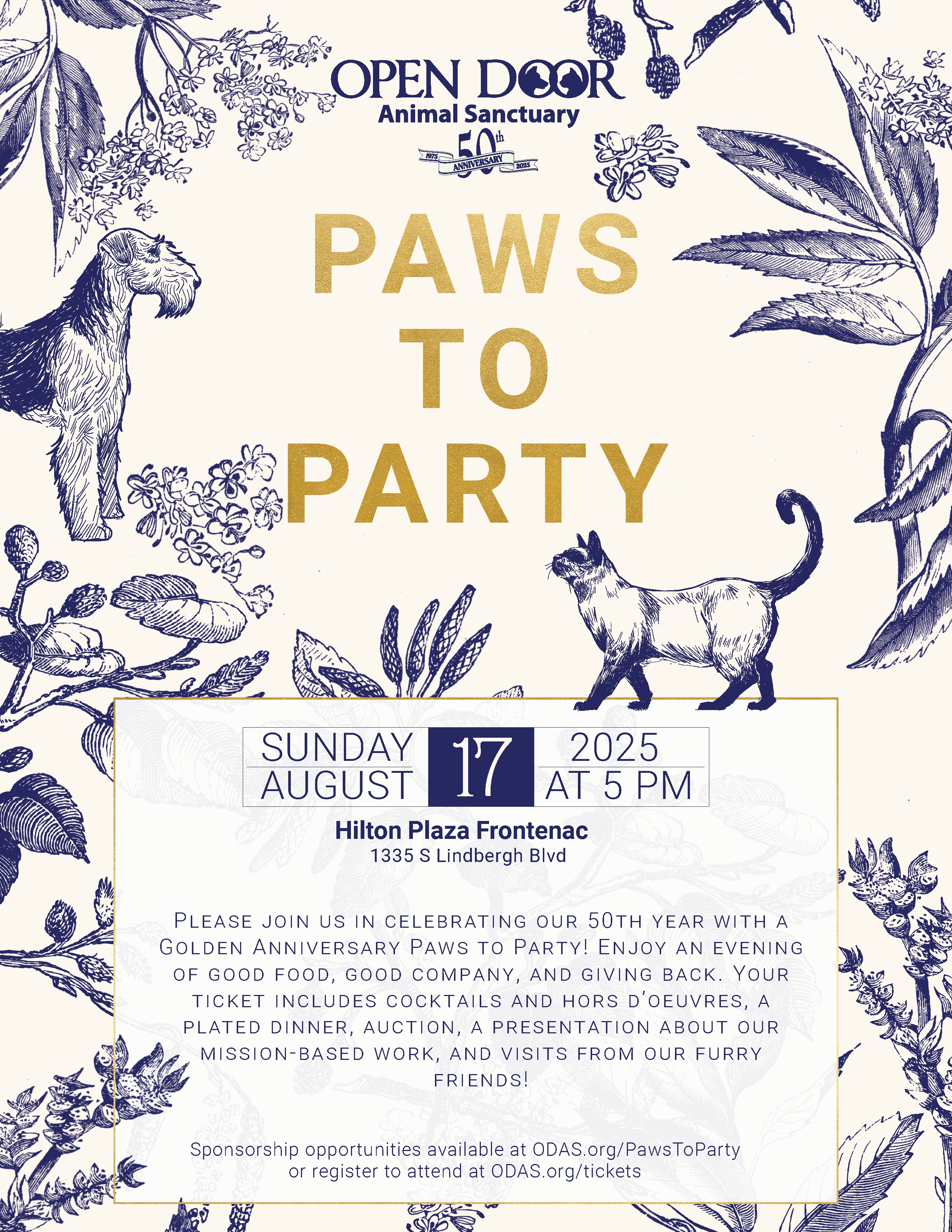 Join us for our annual dinner auction, Paws To Party, as we celebrate 50 incredible years of rescuing and caring for cats and dogs in our community! πΎ