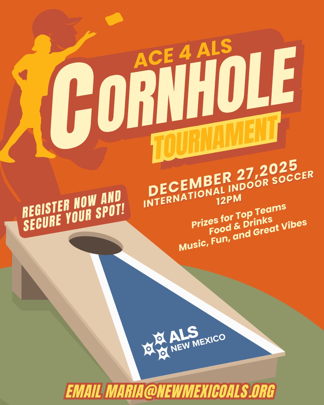 Grab your teammates and join us for the ALS Cornhole Tournament—a lively day of tossing bags and raising hope! This community event brings together players of all skill levels to compete, connect, and support those affected by ALS. Enjoy music, food, prizes, and the chance to make a meaningful impact.
