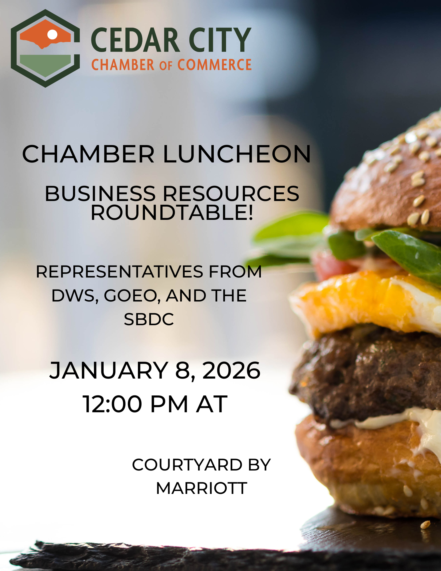 We have representatives from The Governor's Office of Economic Opportunity, Department of Workforce Services, and the Small Business Development Center coming to teach us about opportunities that may be new to us. It will be a luncheon filled with information, good food, and good company!