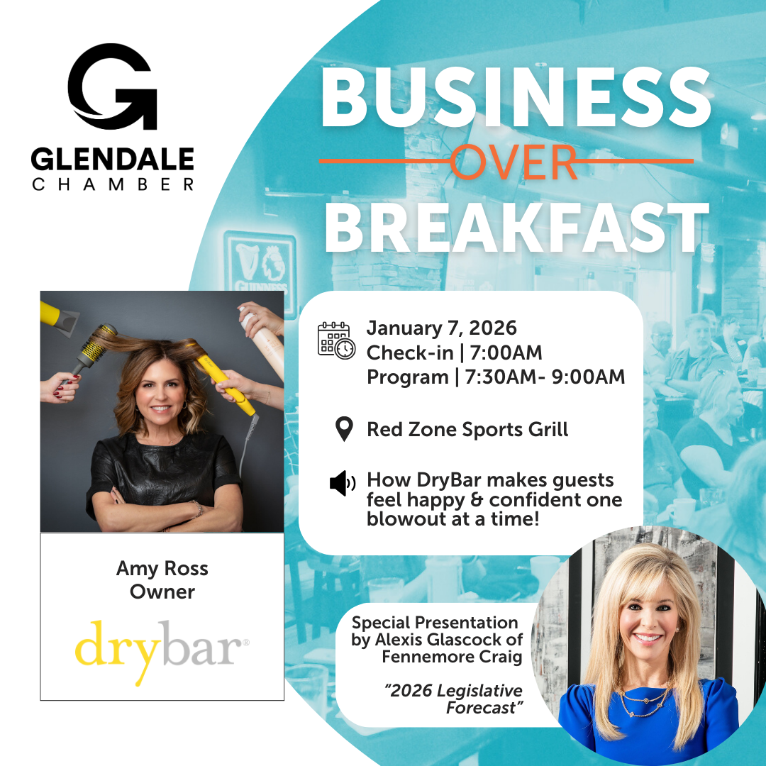 All event attendees by registering agree that their image and person may be photographed or videotaped as part of the audience. The Glendale Chamber reserves the right to use any images or video captured during its event for promotional purposes and marketing purposes.