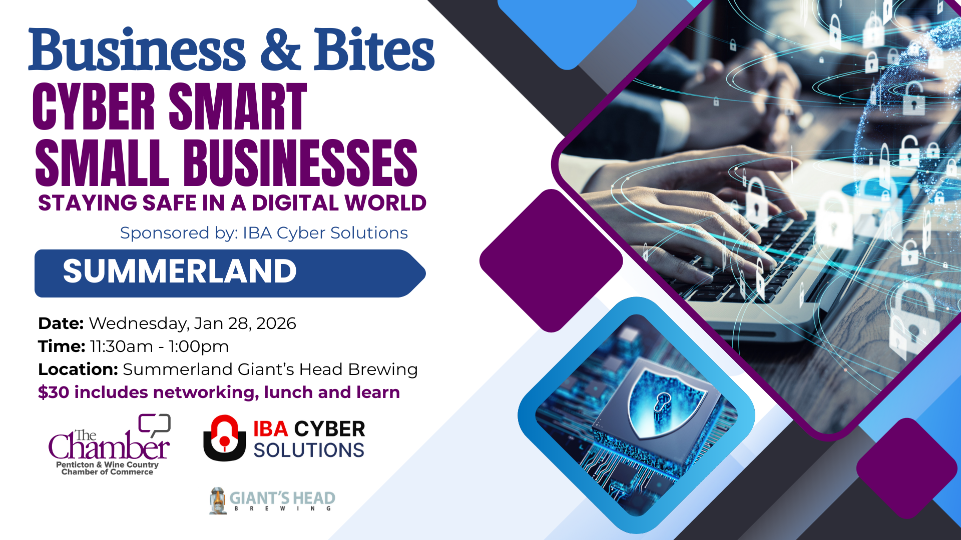 Biz & Bites Luncheon Small businesses are a common target for cyber threats and fraud. At this Biz & Bites Luncheon, learn how to recognize risks, protect your business and data, and take simple steps to stay cyber smart.
