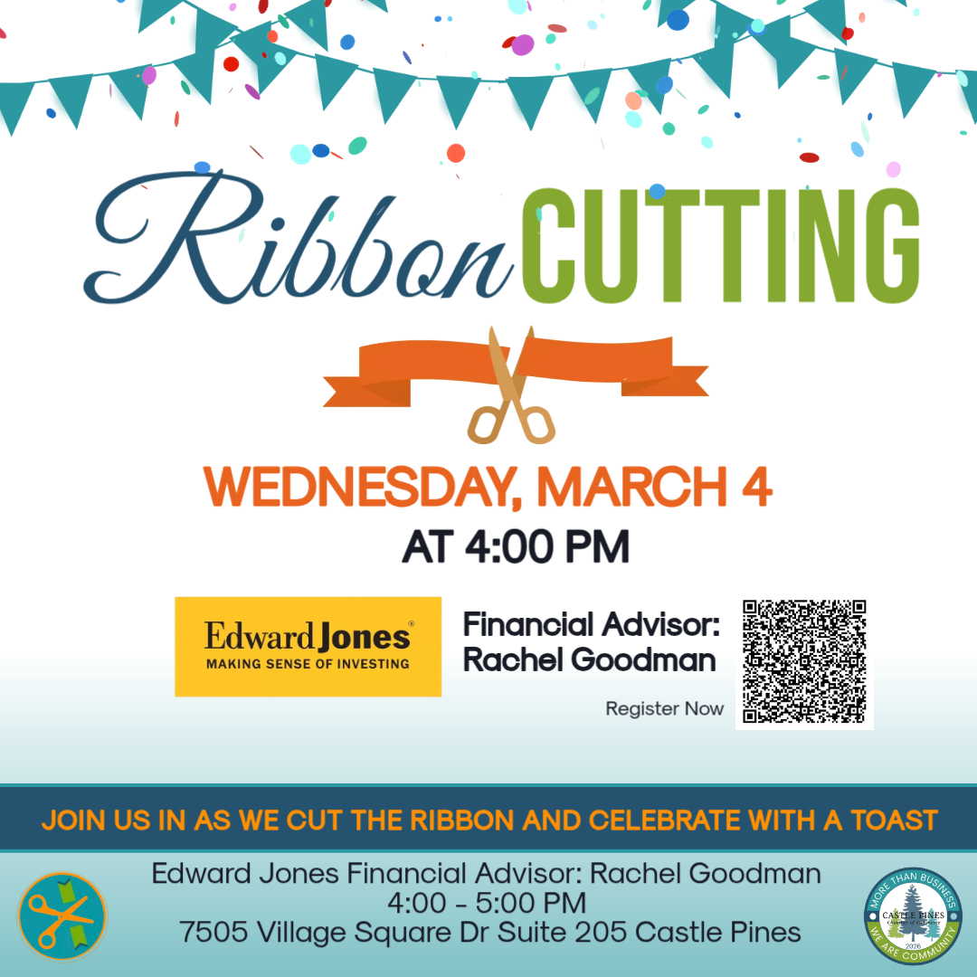 Join us as we officially welcome Rachel Goodman, Financial Advisor with Edward Jones, to the Castle Pines business community with a Ribbon Cutting celebration!