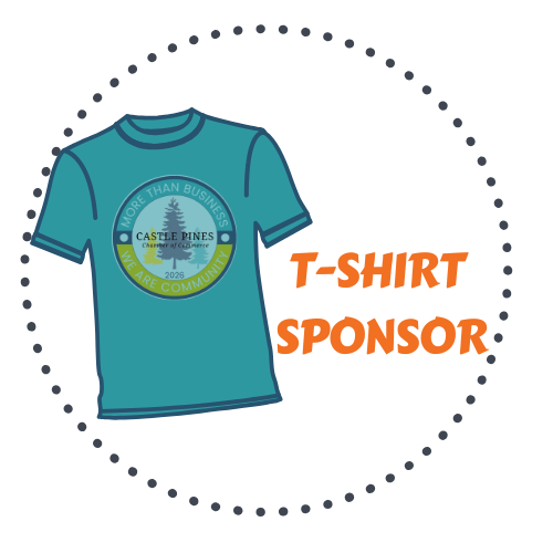 Get your logo front and center (well, technically the back 😉) of our official Castle Pines Chamber t-shirts! For just $100, your business logo will be prominently displayed on shirts worn by staff and volunteers at two of our biggest events of the year: Food Truck Frenzy and Party in the Park! T-shirts will also be sold at all of our events!