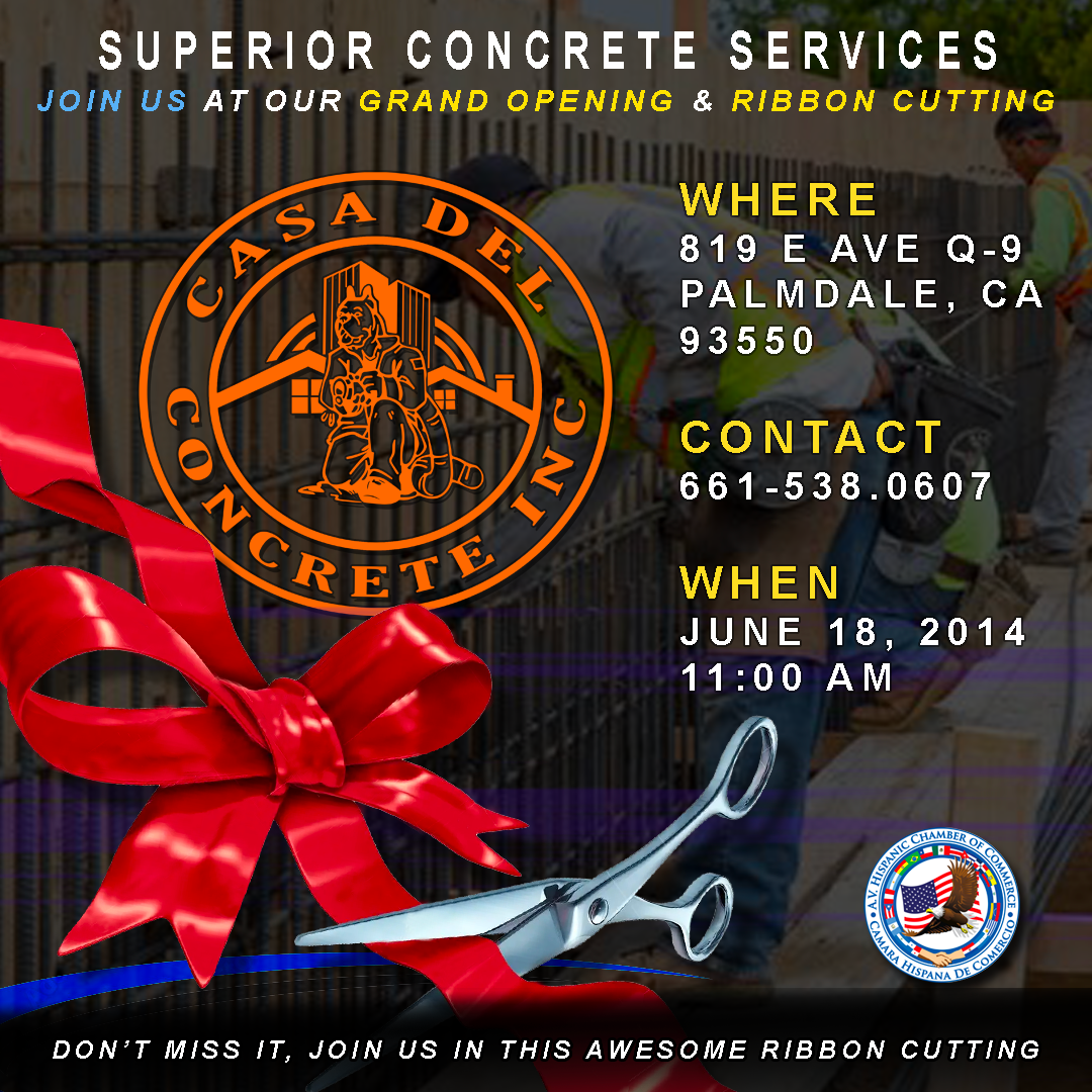 You are cordially invited to celebrate the grand openings of Casa Del Concrete an exciting new business launching in our very own Antelope Valley! This event promise to enhance the charm and attraction of our local community.