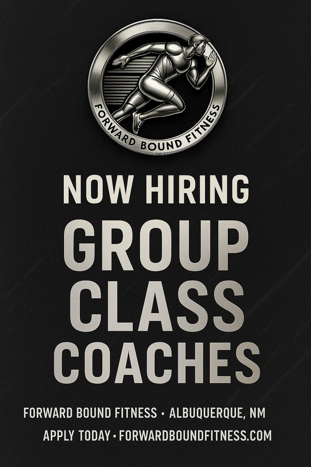 Forward Bound Fitness (Albuquerque, NM) is hiring passionate Group Class Coaches who value health, wellness, and safety above all else. We’re looking for reliable, high-energy individuals who love working with people and want to grow in a team-based, supportive environment—not a self-focused one. Our ideal coach is someone who genuinely cares about helping others move better, get stronger, and feel more confident through our Train–Build–Burn system. You’ll lead small group classes of up to 10 athletes, provide clear instruction and safe modifications, keep the energy high, and maintain a professional, motivating environment. Experience is a plus, but the most important qualities are reliability, coachability, and a passion for learning. Forward Bound Fitness is flexible, growth-oriented, and committed to developing its coaches through mentorship and collaboration. If you’re ready to bring your energy and purpose to a team that’s redefining fitness in Albuquerque, send us a quick message or email explaining why you’d be a great fit and your experience in coaching or fitness.