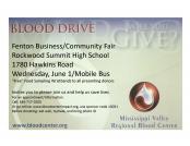Mississippi Valley Blood Drive at Business FairNo reservations are required to donate on June 1st, however you may register for a specific time if you prefer. All who donate blood will be given a "Free Food Sampling" wristband for the Business/Community Fair. To register online: https://www.bloodcenterimpact.org Use Sponsor Code 10031 Click Here to Print a Blood Drive Poster for your Business!! Support for Joplin MO!!