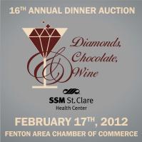 Purchase Your Auction Tickets Today!$50/person or $450/table of 10 *After January 31st, tickets will be $60/person or $500/table of 10* Ticket price includes Dinner and Open Bar! Auction Invitations will be arriving to you shortly and will allow you to purchase tickets! To purchase tickets now, please call the Chamber Office or download the registration form at www.fentonmochamber.com Thank You...Auction Committee for all of your hard work and dedication so far with this year's auction! We would not be able to do it without you so keep up the outstanding work! Join Your Fellow Chamber Members Who Have Already Donated...American Solutions for Business - Andre's Banquet Facilities & Catering - Beckerle Travel - Bender, Inc. - Body Balance Chiropractic - Brookwood Dental Center - Brown Mackie College-St. Louis - Clayton Corporation - Commerce Bank - Coughlin, Donovan, Niehaus & Scherle, P.C. - Current News Magazine - Dairy Queen-Orange Julius - Deco Dental - Delmar Gardens of Meramec Valley - Denny Dennis Sporting Goods - Design 522 - Dierberg's Fenton Crossing - Dove Chocolate Discoveries-Robin Hall - Drury Inn & Suites - Edward Jones-Dale E. Roethemeyer - Edward Jones-Matt Thomason - Edward Jones-Sean C. King - Express Employment Professionals - F2 Garage Door Solutions LLC - Fabick CAT - Fenton Family Eyecare - Fenton Sew and Vac - FortuneBank - Generation Gems - Grand Rental Station - Greensfelder, Hemker & Gale, P.C. - Hely Heating and Cooling - Jackson Auto and Truck - Jay B Smith Funeral Homes - Jefferson College - Jilly's Cafe and Steakhouse - Jim Butler Chevrolet - Kenrick's Meats and Catering - Maritz - Maurer Realty and Development - Meramec Heights Collision Center - Mercy Clinic Pediatrics-Fenton - Miken Technologies - O.Voorhees Painting - Port Salon & Day Spa - Prestige Print Solutions - Prism Touch Massage-Vicki Carpenter - SAMMY J Balloon Creations - SERVPRO of Fenton/South Ballwin - Speed-e-Way Printing Service - SSM St. Clare Health Center - State Farm Insurance-Marty Wilder - St. Anthony's Medical Center - St. Luke's Urgent Care Center - Sunset Hills Golf Course & Banquet Center - Swing-A-Round Fun Town - Tapawingo National Golf Club - The Jewelry Connection - Thirty One Gifts-Carrie Bequette - TreeTop Enterprises, Inc. - U.S. Cellular - Westside Personnel Services Thank You, Sponsors...Gold Sponsors Andre's Banquet Facilities & Catering, Commerce Bank, Delmar Gardens of Meramec Valley, Fabick CAT, SAMMY J Balloon Creations "Wall of Wine" Sponsor SERVPRO of Fenton/South Ballwin Section Sponsors Brown Mackie College-St. Louis, Coldwell Banker Gundaker/Glenna Ard, Dove Chocolate Discoveries-Robin Hall, Miken Technologies, State Farm Insurance/Marty Wilder Invitation Sponsor Speed-e-Way Printing Service Program Sponsor Bender, Inc. Sponsorship Opportunities Are Still Available! Contact the Chamber Office Today! | YOU'RE INVITED TO THE...16th Annual Dinner Auction "Diamonds, Chocolate & Wine"