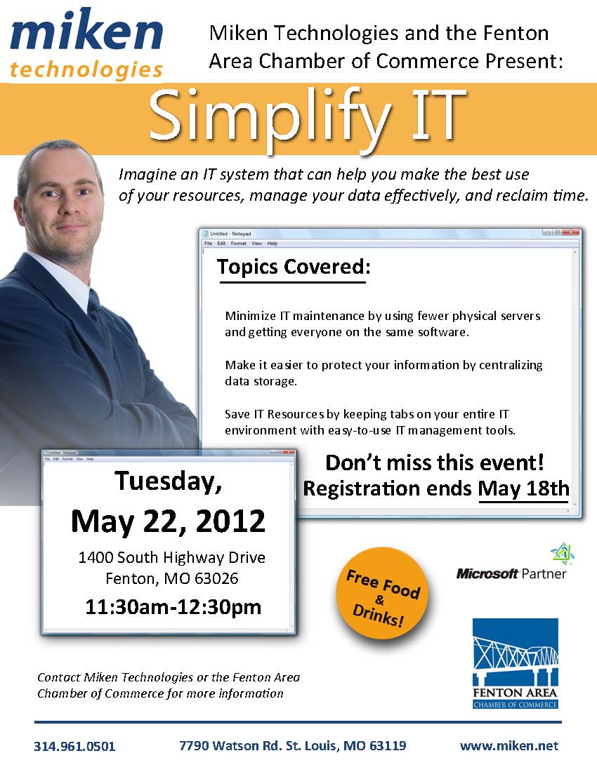 at the Chamber Office (1400 S. Highway Drive) Learn about minimizing your IT maintenance, protecting your information and easy-to-use IT management tools!