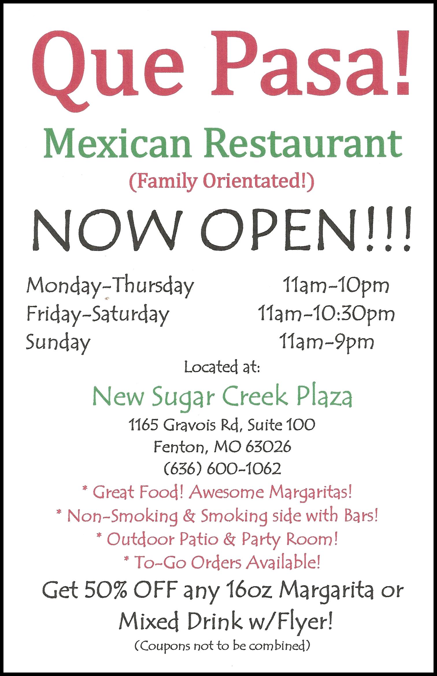 | Fenton "Enews" Focus - July Enews Sponsored by Que Pasa! Mexican Restaurant | |