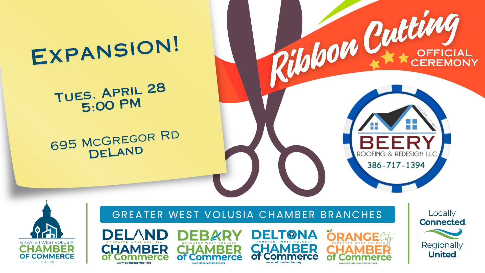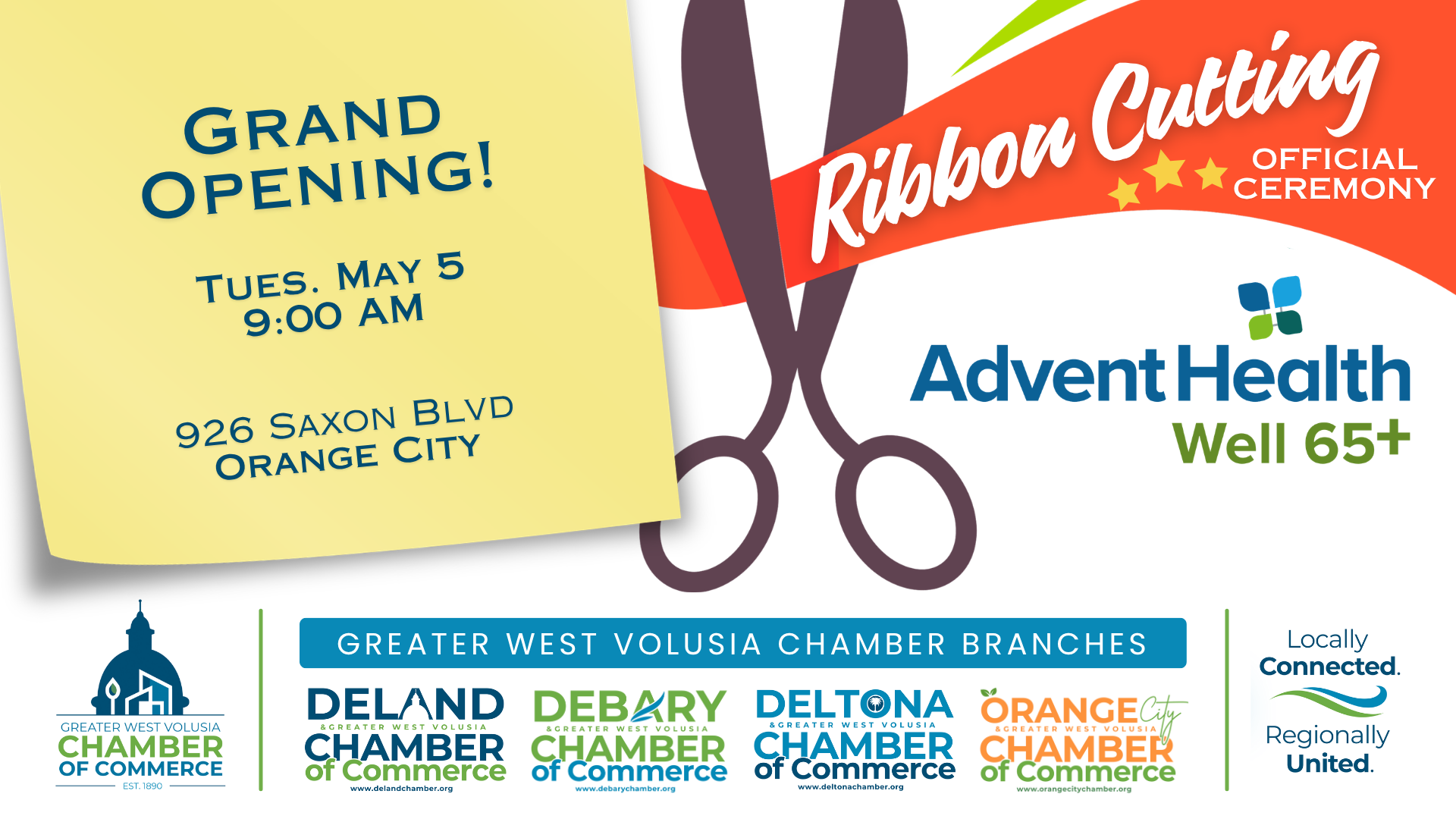 | 4/23/2026 | Get the big picture—and the inside track. The State of the Region features a moderated panel with the mayors of West Volusia’s six municipalities, offering candid discussion on growth, workforce, innovation, and the impact of state legislation on our local cities. Learn where West Volusia is headed and how your business can rise with it. TIME: Check-in & Breakfast: 8:00-8:30 am Program: 8:30-10:00 am EVENT LOCATION: The Center at Deltona – 1640 Dr. M.L.K. Blvd, Deltona ATTIRE: Business dress ADMISSION: Pre-Registration Required; no tickets available at the door TICKETS: Chamber Members – Free Admission Non-Members – $20