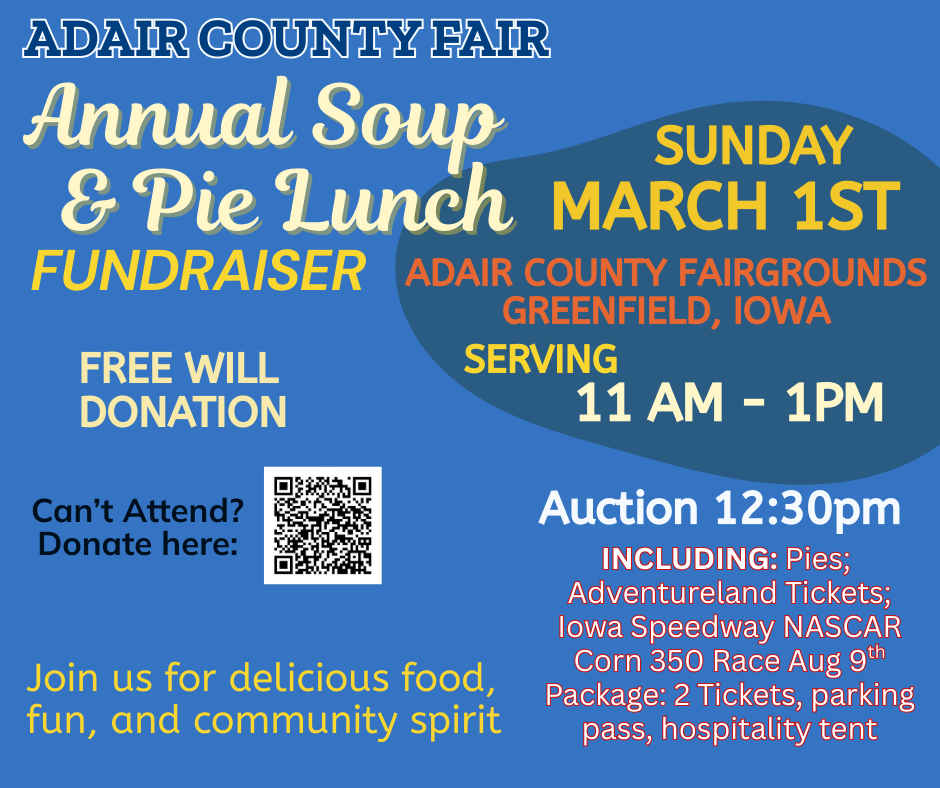 | 2/27/2026 | 5$/person Nerf bullets and safety goggles will be provided All proceeds go to the Adair County Fair and the Washing Stars 4-H Club more info... |