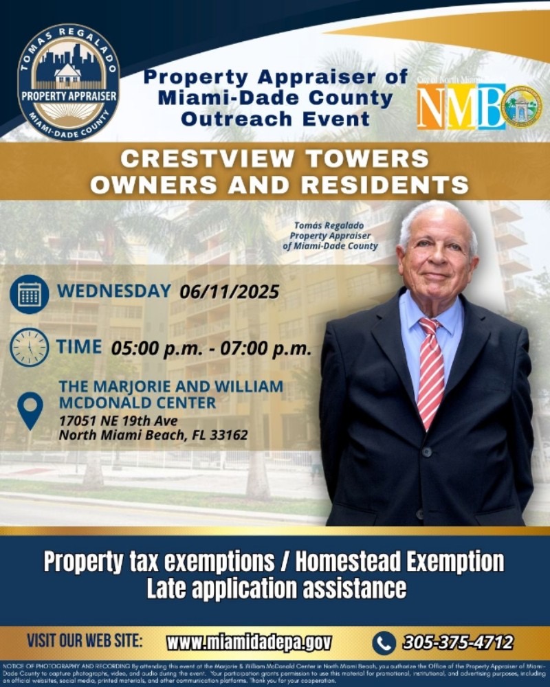 You’re Invited: Wed. 6/11 City of NMB Community and Crestview Towers Discuss Property Tax & Homestead Assistance @ the McDonald Center