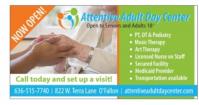 Attentive Adult Day Center, LLC was established in August of 2018. We are fully licensed by the State of Missouri Department of Health and Human Services. We offer seniors and adult 18+ with supervised recreation and health-related services during the day. Care in our center is often an alternative to nursing home care, thus allowing a loved one to continue to live at home, often providing respite care for a burdened adult child caring for elderly parents, spouse, or otherwise caregiver.