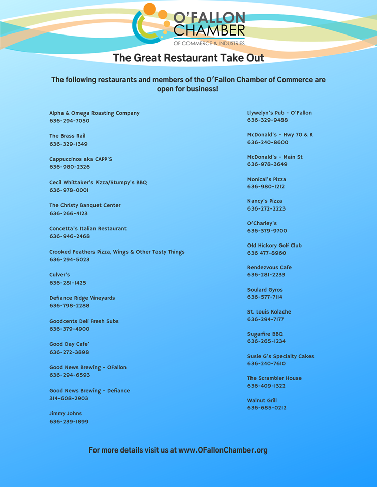 Follow the link below to find the most Up-To-Date information on our local Restaurants: