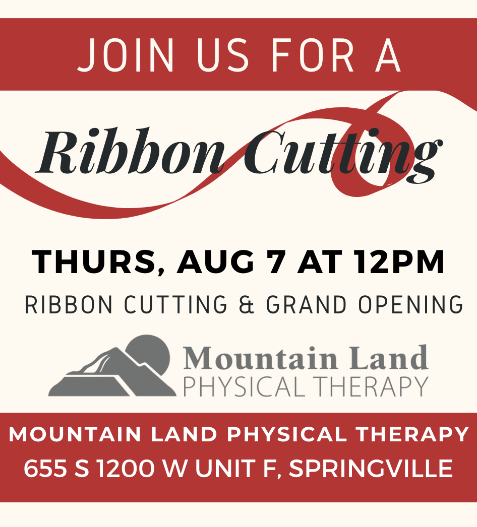 Thursday, August 7th at 12pm - Mountain Land Physical Therapy, Ribbon Cutting, 655 S. 1200 W. Unit F, Springville