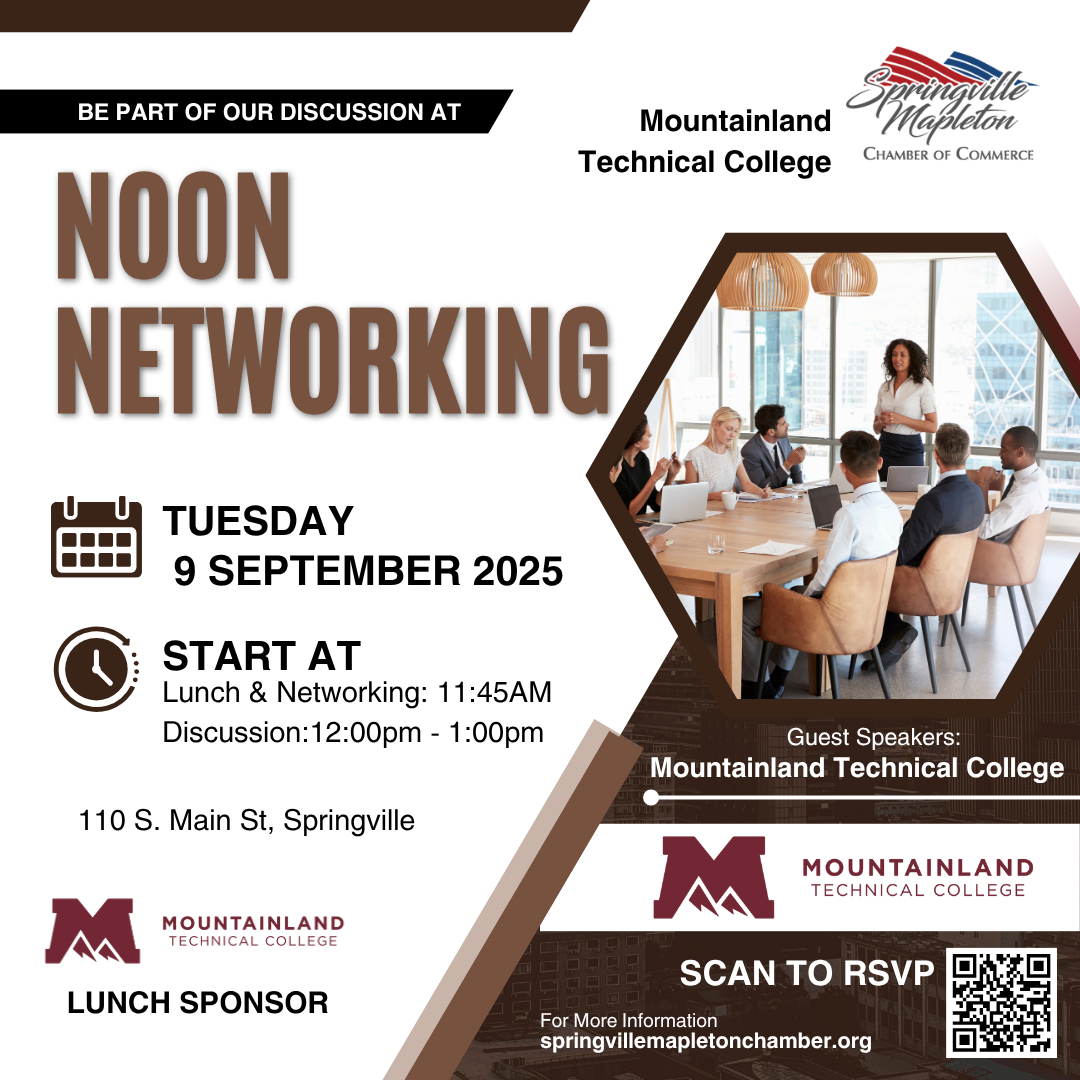 Tuesday, September 9th, 11:45am - Noon Networking, MTECH, Springville Multipurpose