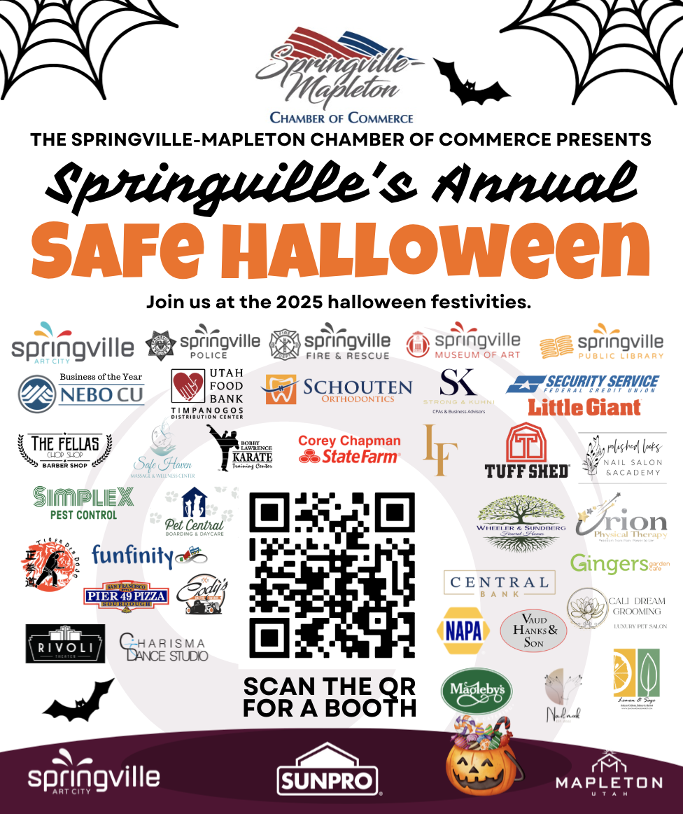 Since 1998, the Springville-Mapleton Chamber of Commerce, in collaboration with Springville City, has hosted the Safe Halloween event — a beloved community tradition that began with just 12 businesses and has now grown to include more than 30 local participants from across the city, with over 2,500 community members.