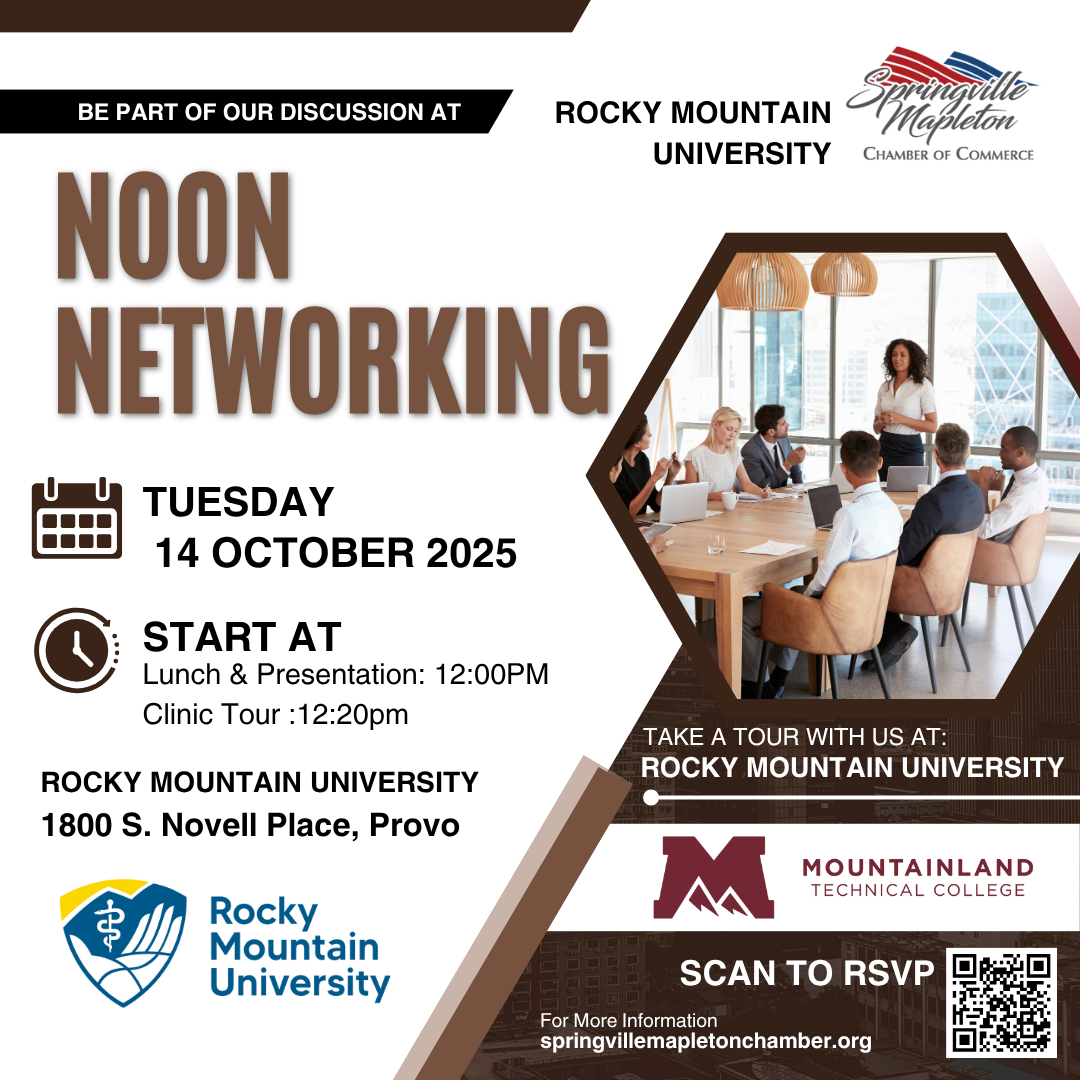 You don't want to miss this amazing opportunity to learn more about Rocky Mountain University and how they can support our local businesses, employees, families, and the next generation of healthcare providers.