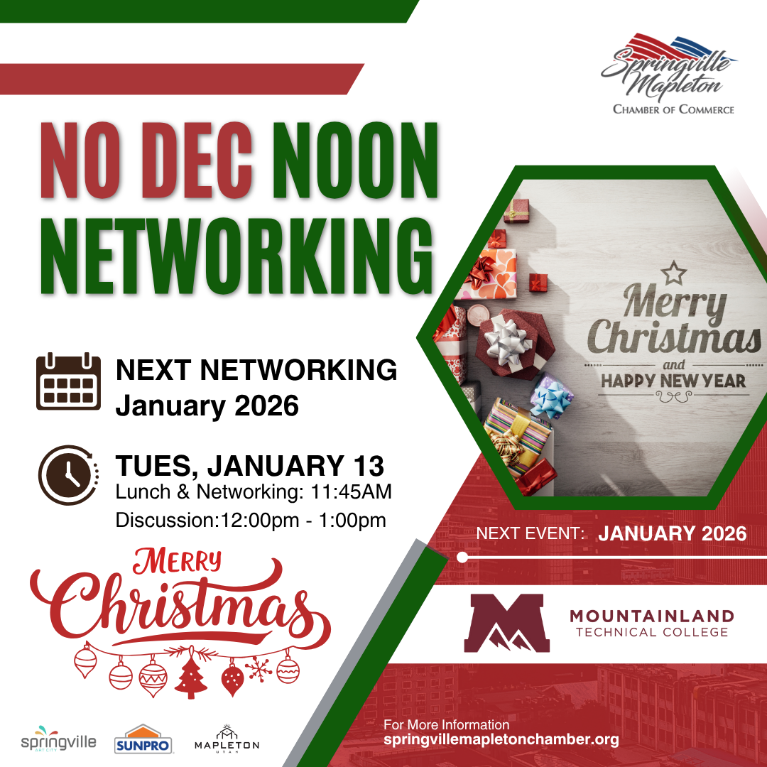 We’re taking a short break for the holidays—there will be NO Noon Networking event in December.