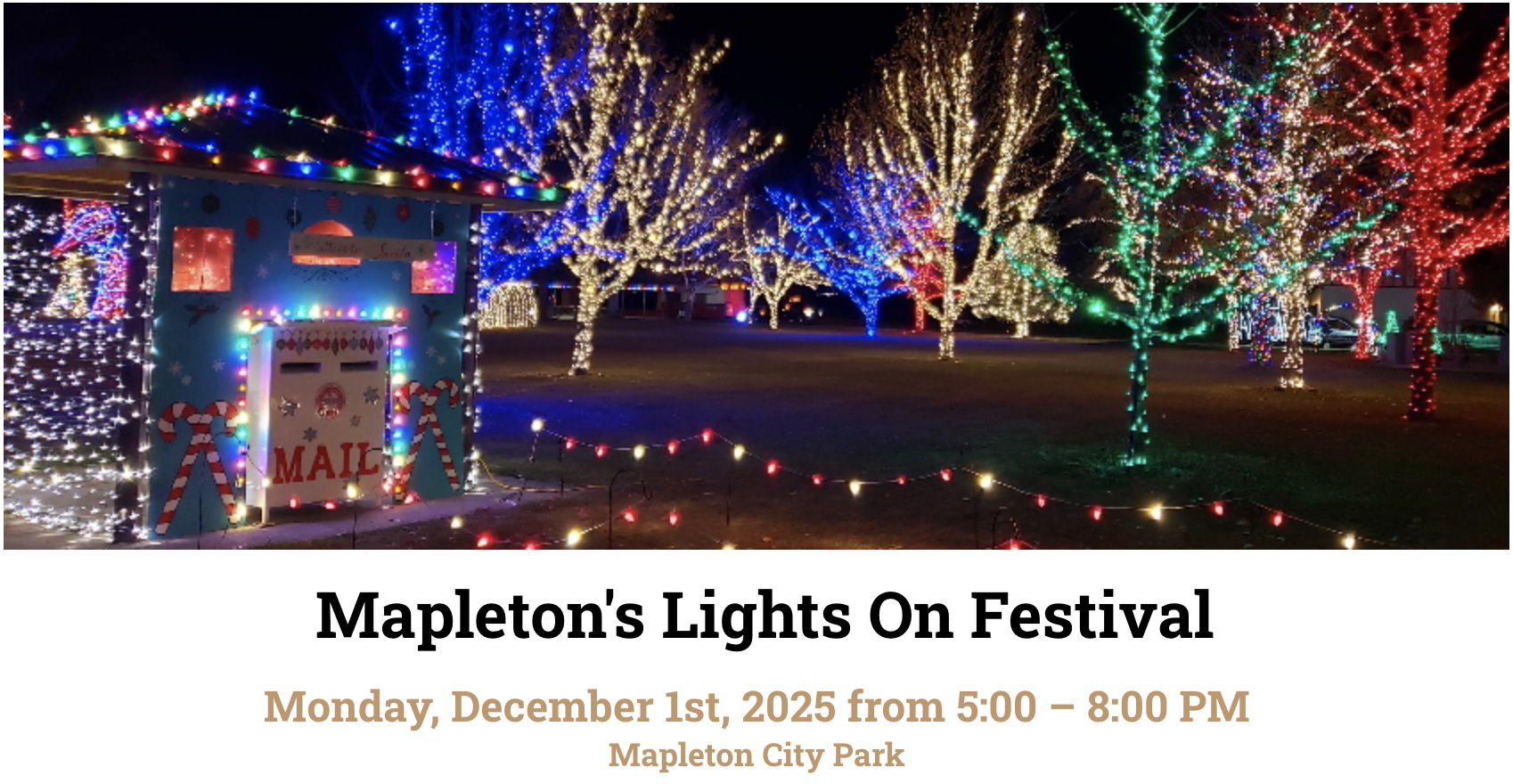 Kick off the holiday season with Mapleton City’s beloved Lights On Festival, an evening full of community cheer and festive fun for the whole family. From the magical lighting of the park to a visit from Santa himself, this is one winter tradition you won’t want to miss!