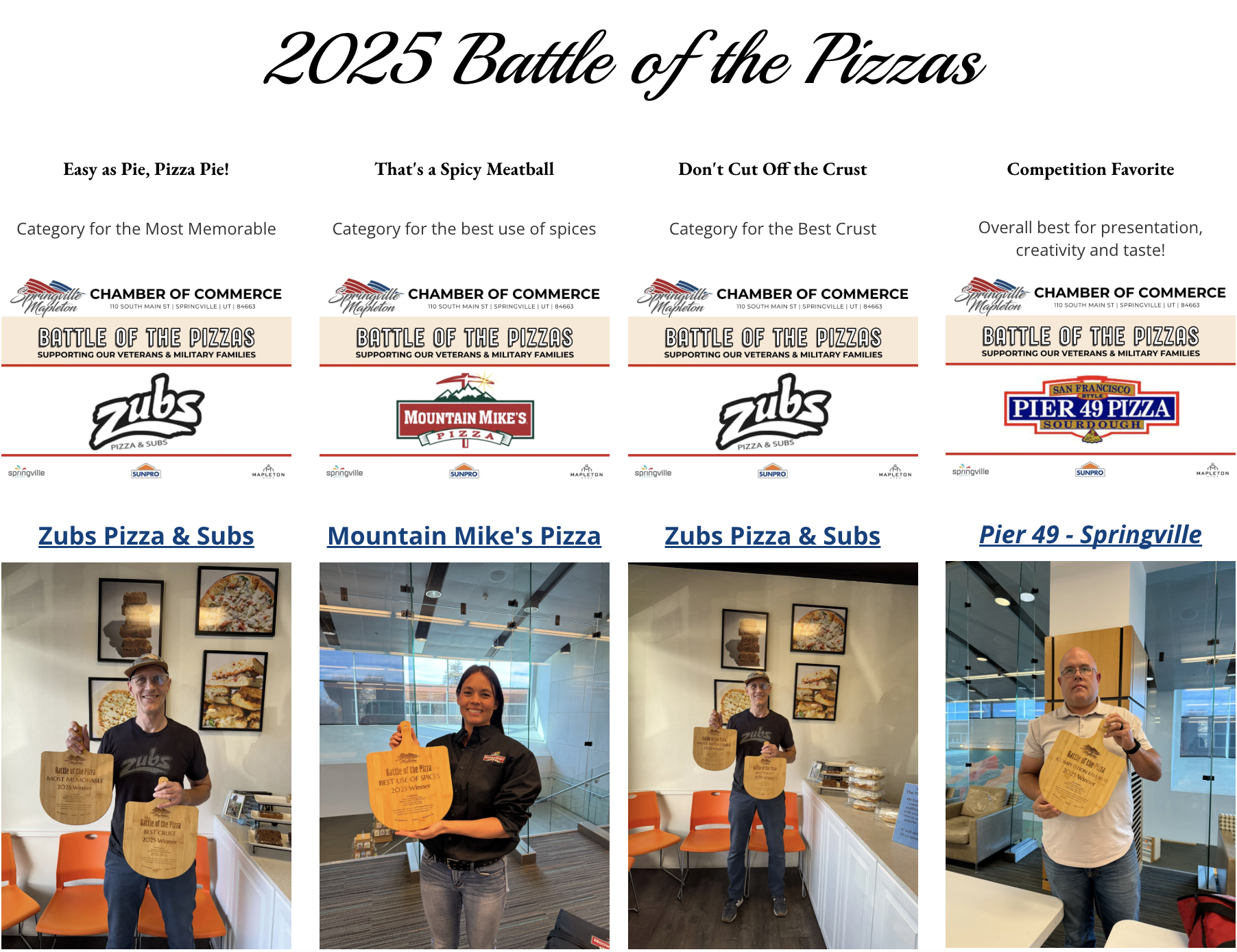 Thank you — Papa Johns Pizza, Mountain Mike's Pizza, Zubs Pizza & Subs, Pier 49, and A Slice of NY Pizza for sponsoring and making the event a success.