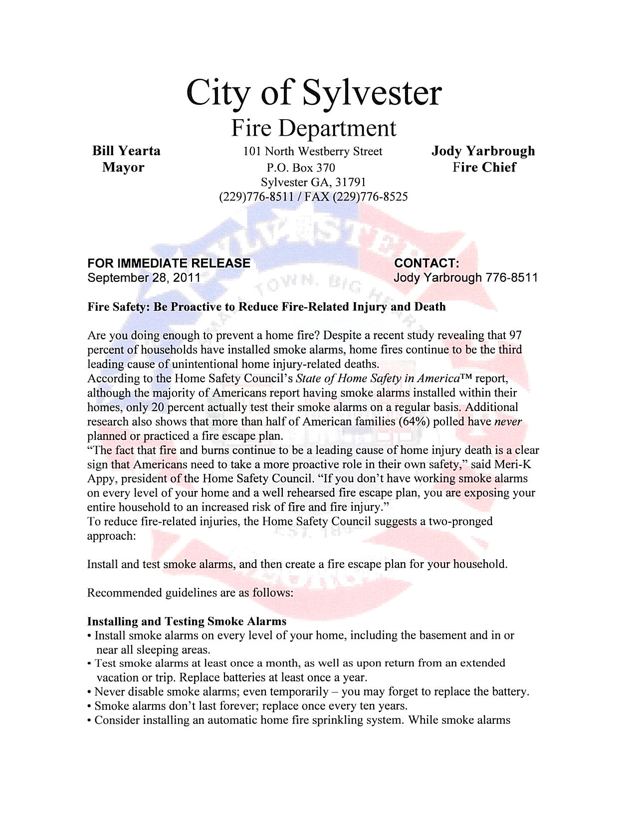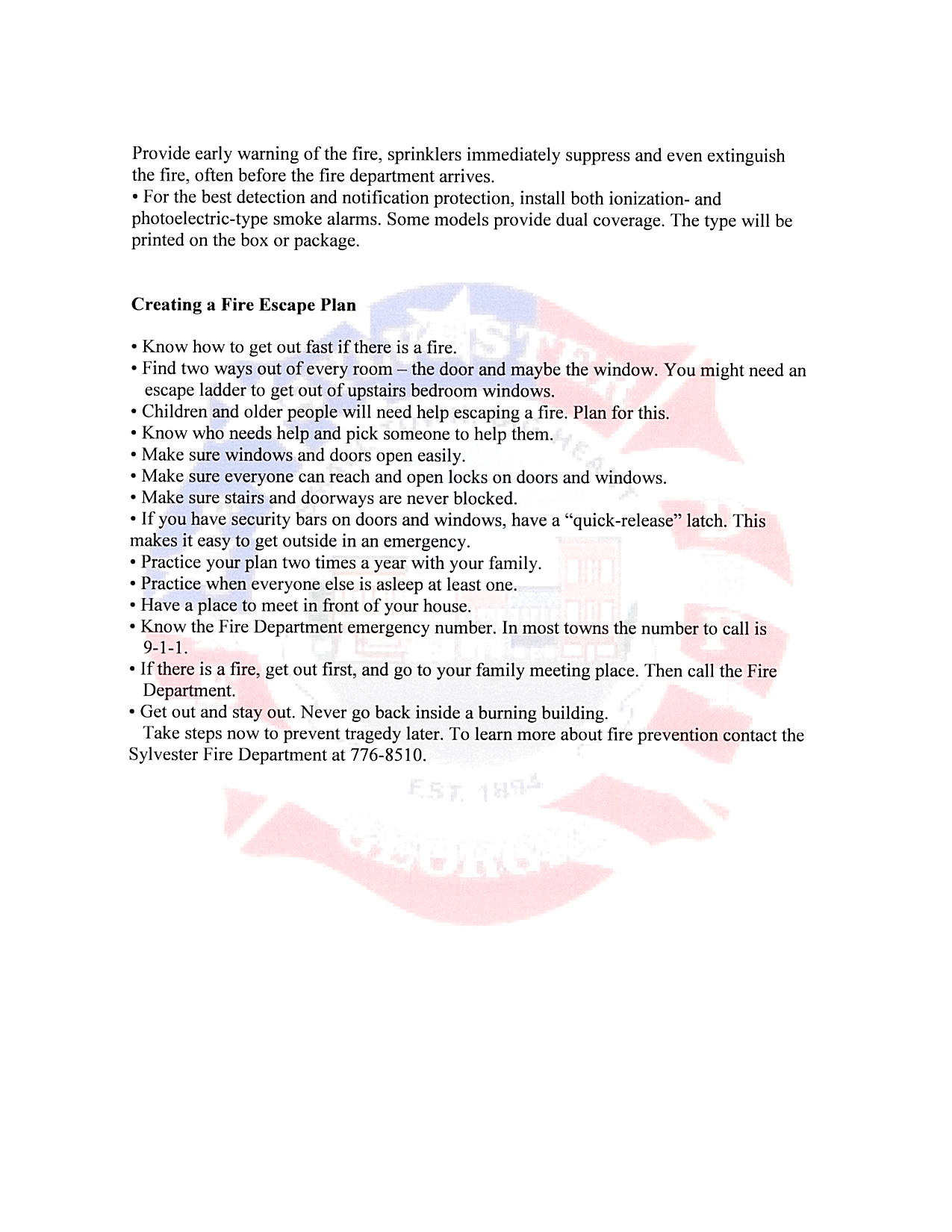 The Sylvester Fire Department and Mayor Bill Yearta wants you to know over 64% of American Never have planned or practiced a fire excape plan. Please see the attachment on how you can get started.