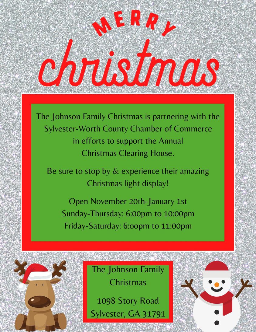 The Sylvester-Worth County Chamber of Commerce will be taking our own spin on the traditional 12-days of Christmas in an effort to support our Shop Local Campaign. We will be giving away gift certificates to shop with our chamber members. In order to be entered into our giveaway, you must present a receipt dated 11/23/2020 to 12/17/2020 and the purchase must have been a minimum of $25 with one of our chamber members.