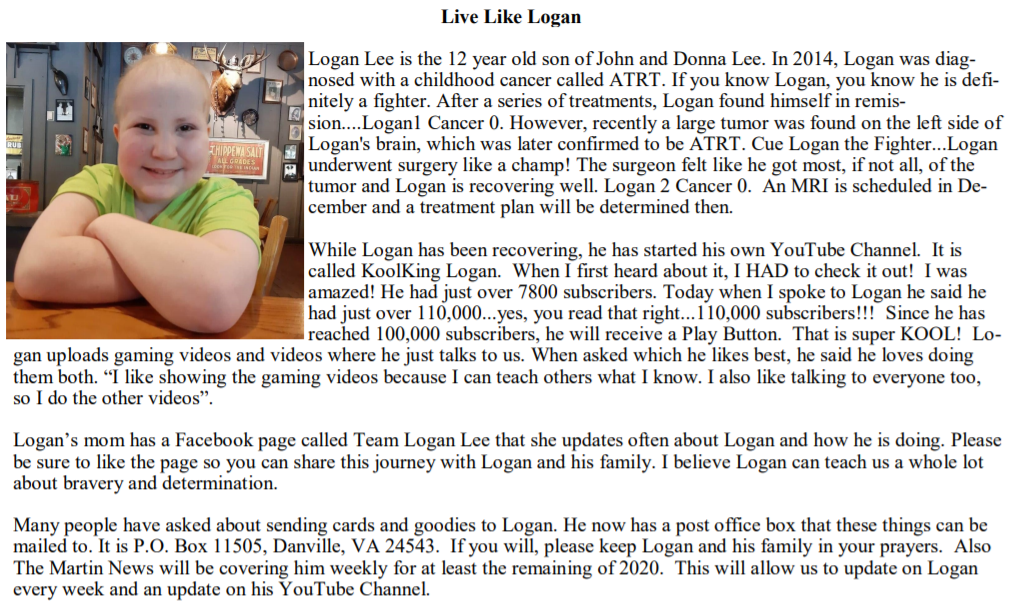 Here is an article from last week's Martin News! For more from the Martin News, click the link here.