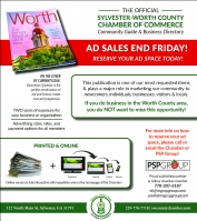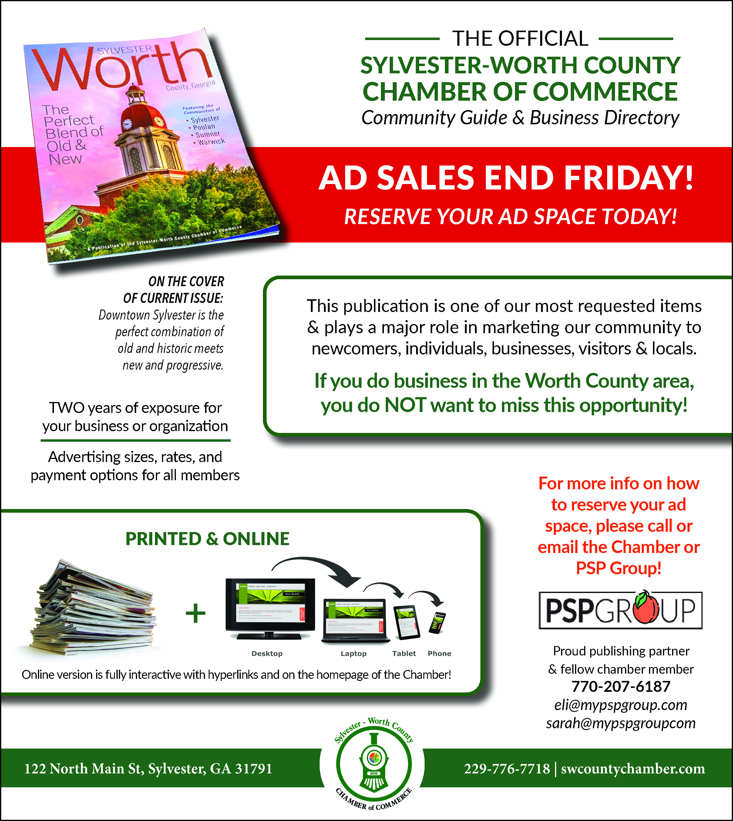 One great member benefit is you are listed in the Magazine Business and Resource Directory for FREE! You also get a discounted price on your ad. Just let the PSP Group know you are a Member of the Sylvester-Worth County Chamber of Commerce.