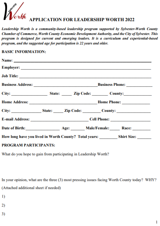 If you are interested in joining our 2022 Leadership Worth Class, please fill out the form below. The deadline to apply is November 30th.
