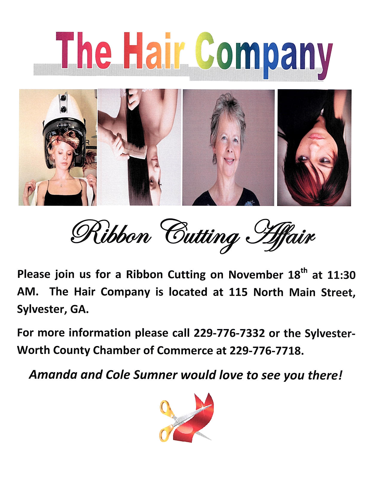A Chamber Ribbon Cutting for new member "The Hair Company": CLICK here for Flyer: The Hair Company
