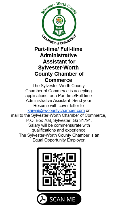 Just like last year’s raffle, we will be hoping to reach a goal of $20,000! That means one person will win up to $10,000! Our portion of the raffle will go to CTAE scholarships at Worth County High School and as well as going back into our Shop Local program! The tickets will be $20 apiece and will be sold from now to December 15th, 2022! The tickets can be purchased at the Sylvester-Worth County Chamber of Commerce! If you have any questions please call 229-776-7718 or email us at info@swcountychamber.com .