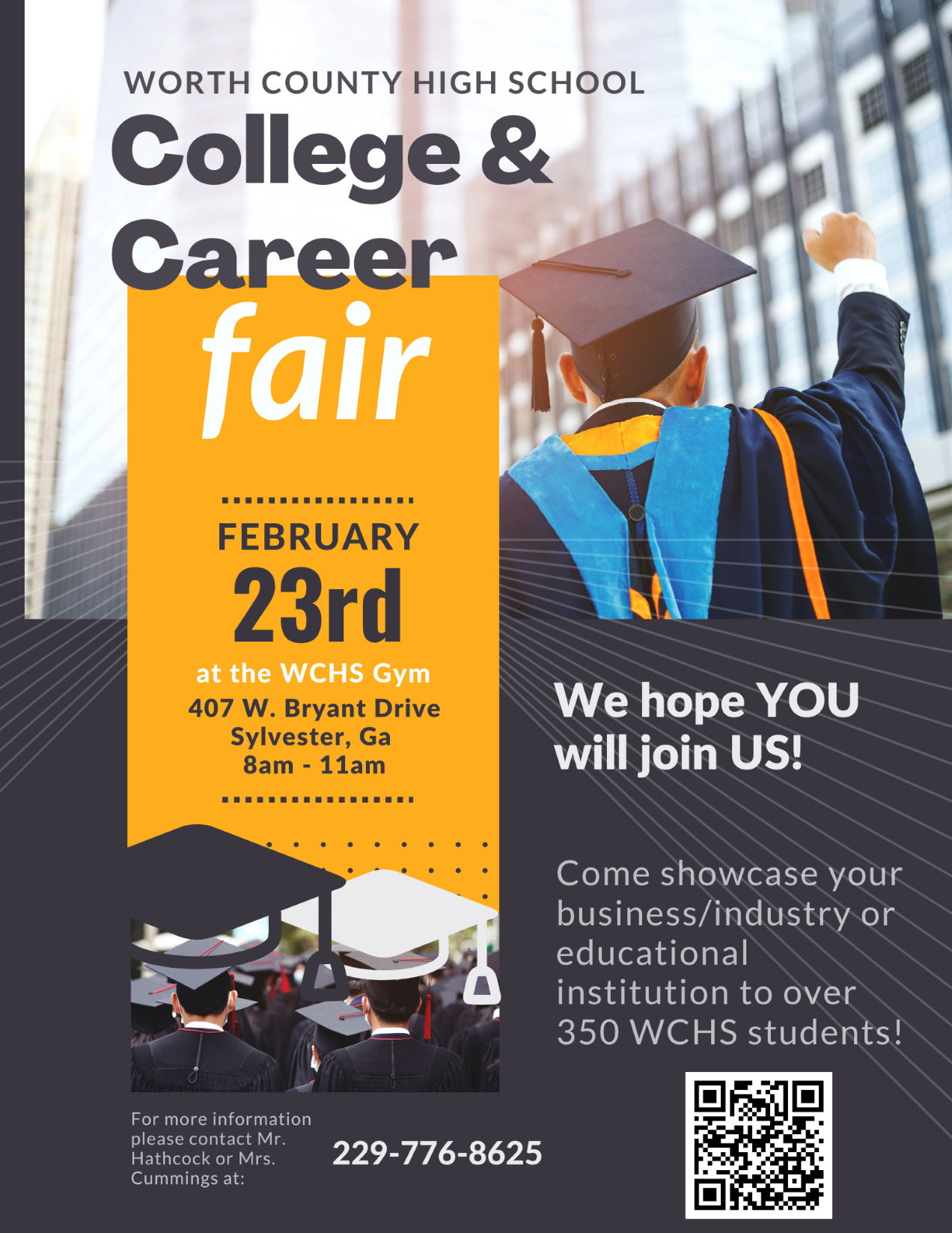 Worth County High School would like to invite your business, industry, or educational institution to their College & Career Fair! For more information, click here.