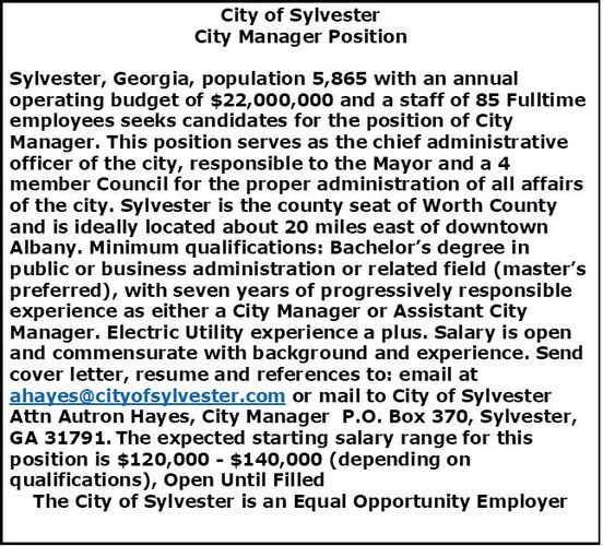 If interested, please send cover letter, resume and references to ahayes@cityofsylvester.com