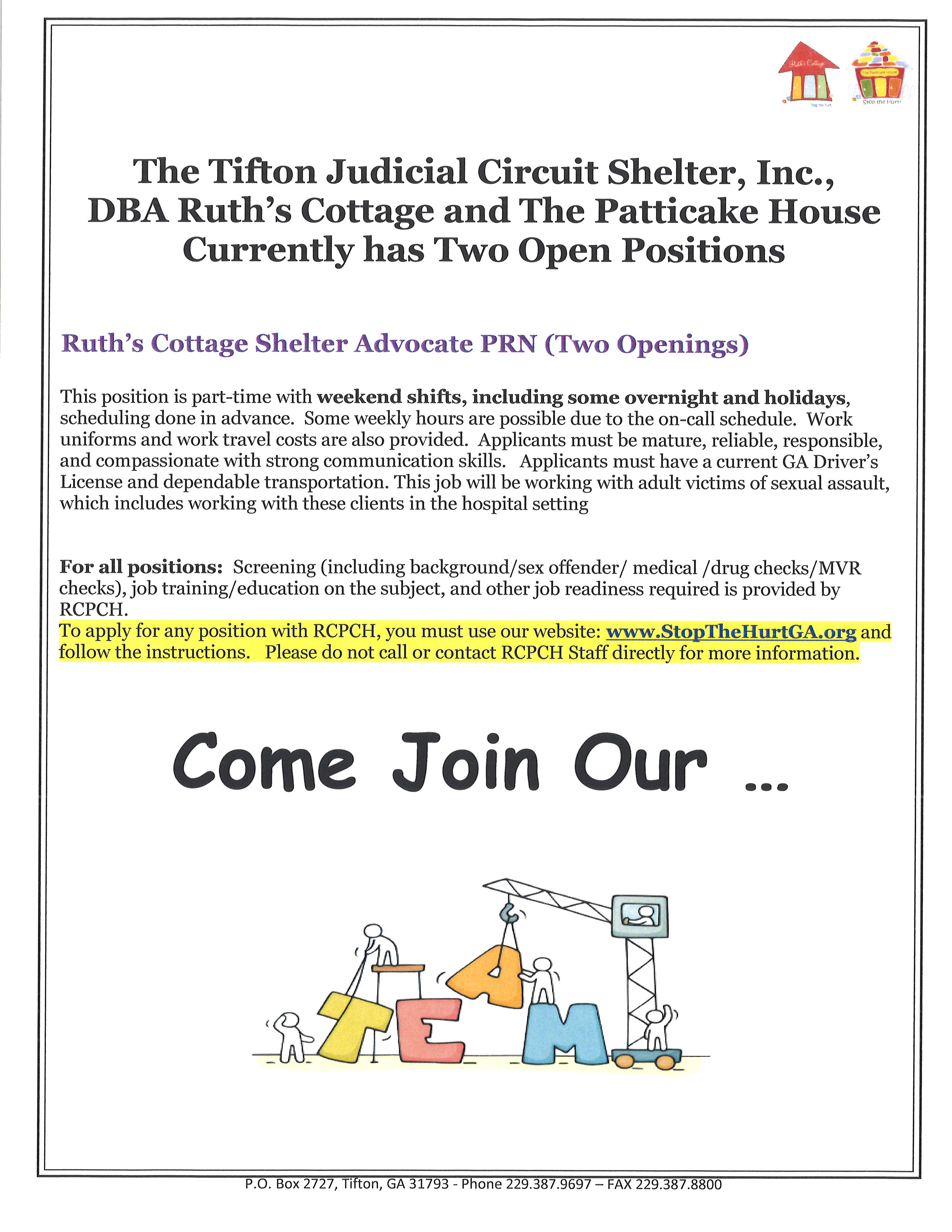Ruth's Cottage Shelter Advocate PRN (Two openings)
