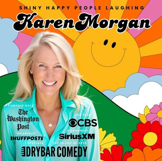 Join the Shiny Happy People Laughing Tour for a night filled with laughs and good vibes. Stand-up comedian Karen Morgan was born and raised in Athens, Georgia but now calls Maine home. She has 2 Dry Bar Comedy Specials: Rub Some Dirt On It (2023) and Go Dawgs! (2020). Her latest audio album, Shiny Happy People Laughing (named with special permission from R.E.M.), can currently be heard exclusively on Sirius XM. Karen entertains audiences nationwide with her relatable observations of family and everyday life. Her funny stories of growing up in the 70s and 80s, her "real humor", and clean material connect quickly with audiences. She loves traveling for shows, especially to places that have a Waffle House!