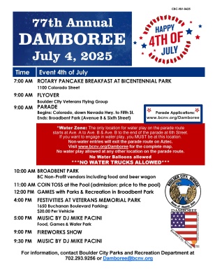 Tradition. It’s what binds our community and strengthens our roots. The Boulder City Damboree Committee is hosting its 77th Annual 4th of July Celebration. This event has a long history of bringing people together and creating community and family traditions. The community at large and our friends from afar look forward to the magic of this cherished event.