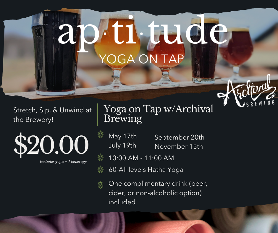 Unroll your mat and raise your glass! Join us at Archival Brewery for Yoga on Tap, a unique experience combining a 60-minute all-levels yoga class with the charm of a local brewery.