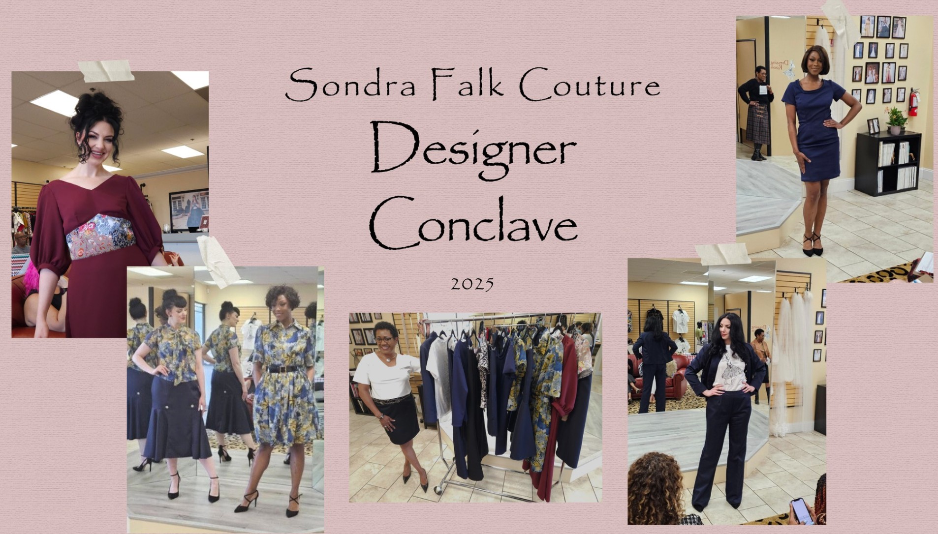 You are cordially invited to attend the next Sondra Falk Couture Designer Conclave, hosted by Sondra Falk Couture, LLC. This exclusive event is your opportunity to view and discuss the latest color trends, innovative products, and textiles in the fashion industry by award winning fashion designer, CEO, and owner Sondra Falk. The event will share her vision and inspiration behind her luxury women's apparel collections. This platform promotes sustainable fashion, handmade couture apparel, and supports uncompromising craftsmanship. Attendees will have the unique opportunity to view and purchase her limited designed garments.