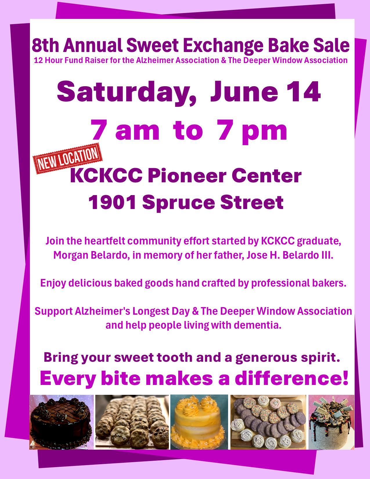 The Deeper Window Association has one fundraiser every year. The 8th Annual Sweet Exchange Bake Sale is June 14, 2025 from 7AM-7PM at KCKCC Pioneer Career Center!!! Please start preparing to enjoy a large assortment of baked goods made from scratch with real butter, eggs, and all the deliciousness that goes into creating hand crafted treats. We accept $$$ donations, so please bring a very generous spirit with you to make a difference in the lives of people on a dementia journey!