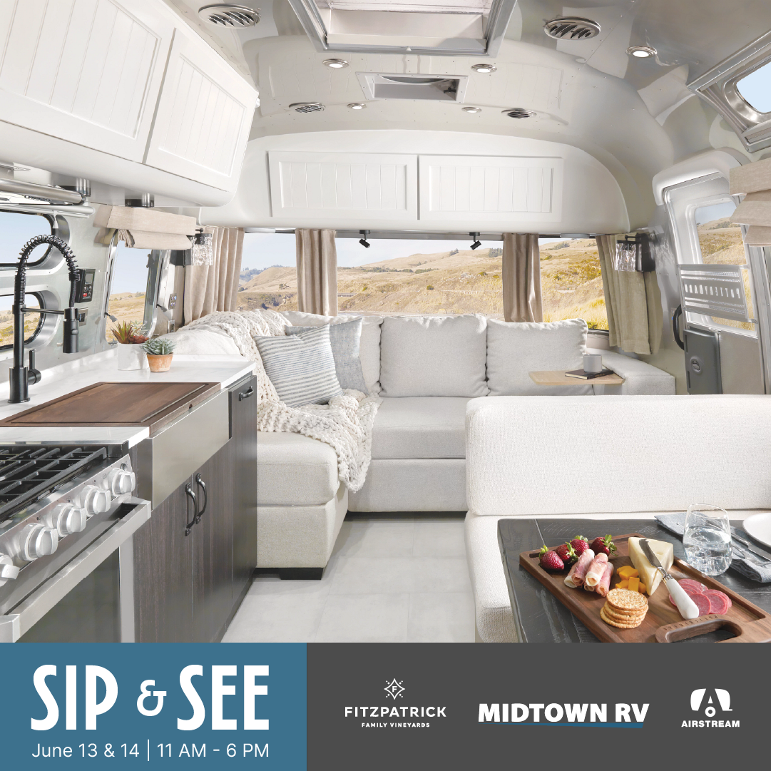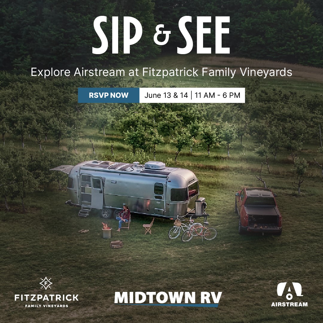 Join Midtown RV at the stunning Fitzpatrick Family Vineyards for a unique summer experience where luxury RV travel meets fine wine. On June 13 & 14, sip world-class Fitz sparkling and still wines while stepping inside the legendary Airstream travel trailers that inspire adventure and timeless design.
