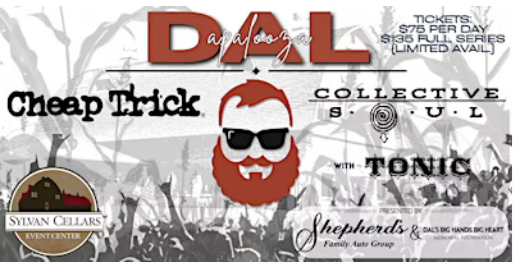Kicking off the all-rock night of Dalapalooza summer music festival is grammy nominated and multi-platinum selling group Tonic, billboard music award winner Collective Soul will take the stage next, and then the big show begins! Headliners, Cheap Trick were inducted into the Rock and Roll Hall of fame in 2016 and have received 40 gold and platinum awards, numerous Classic Rock awards, and were recognized by VH1 as one of the 100 Greatest Artists of Hard Rock.