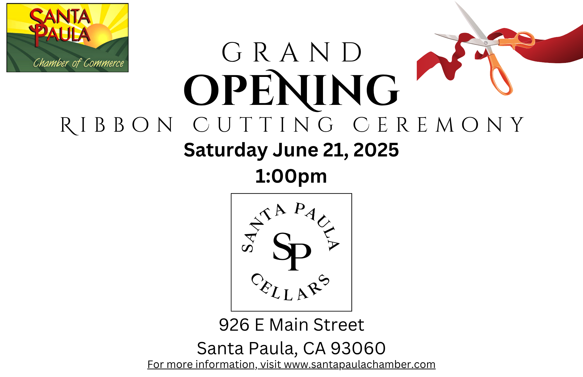 The Santa Paula Chamber of Commerce invites you to the Ribbon Cutting Ceremony for Santa Paula Cellars — a new gem in the heart of downtown!