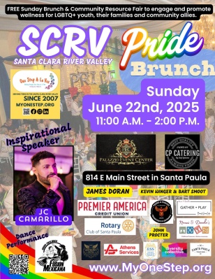 Are you ready to Radiate at Pride? Join us for FREE Sunday Brunch & Community Resource Fair to engage and promote wellness for LGBTQ+ youth, their families and community allies. SCRV Pride Brunch will take place on Sunday, June 22nd, 2025, starting at 11:00 A.M. at Palazzio Event Center located at 814 E Main Street in Santa Paula. We have a great line up of speakers and entertainers for you to enjoy, and SCRV Pride Brunch will bring together community leaders, local businesses, and allies for a morning of inspiration, unity, and celebration.