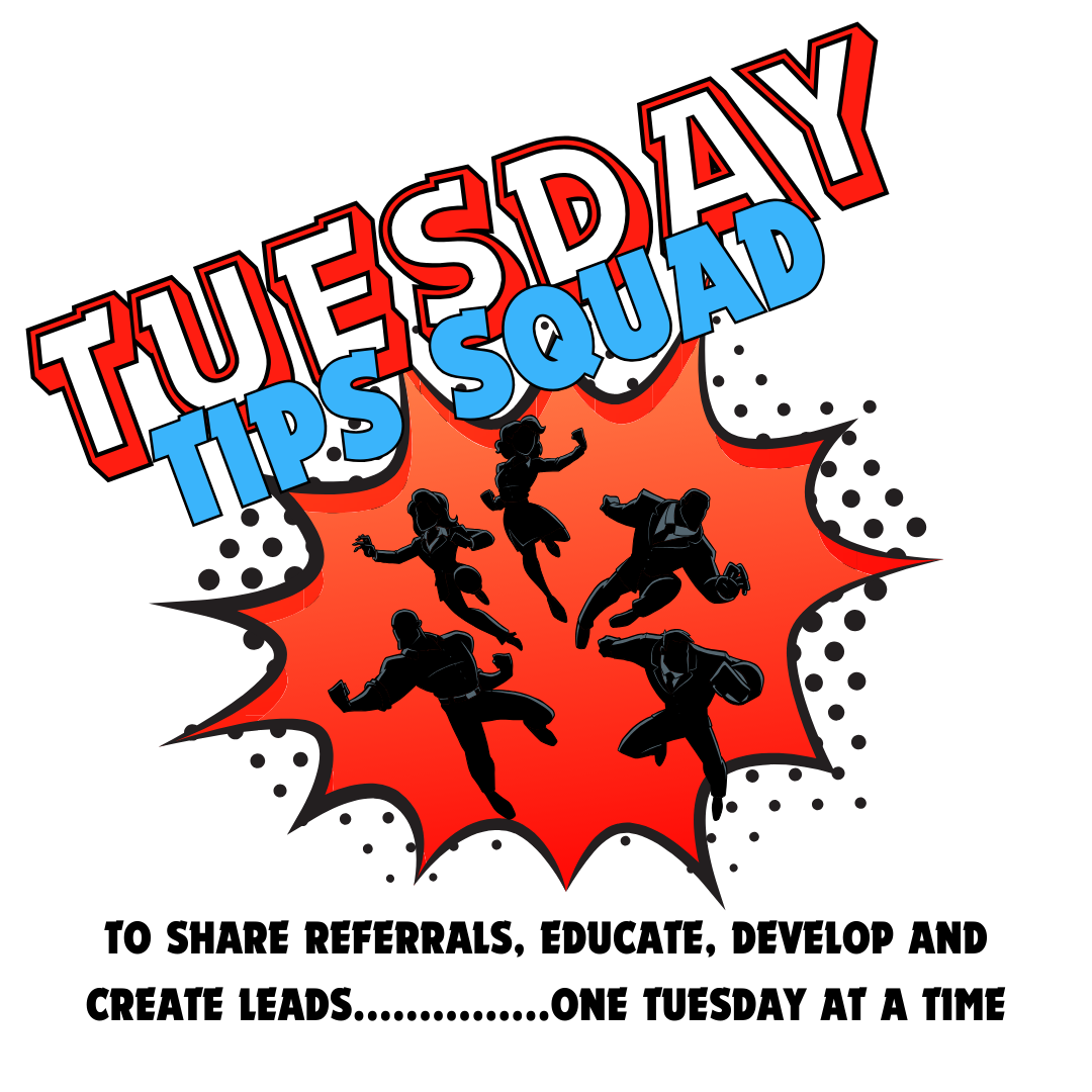 The Tuesday TIPS Squad is open to all and is non-industry specific.  There will be opportunities to share leads, present to all and meet new people.  While there may be others from the same industry in the group, you may become allies and learn from one another. If you would like to visit please contact the chamber and we will reach out to the group leaders.