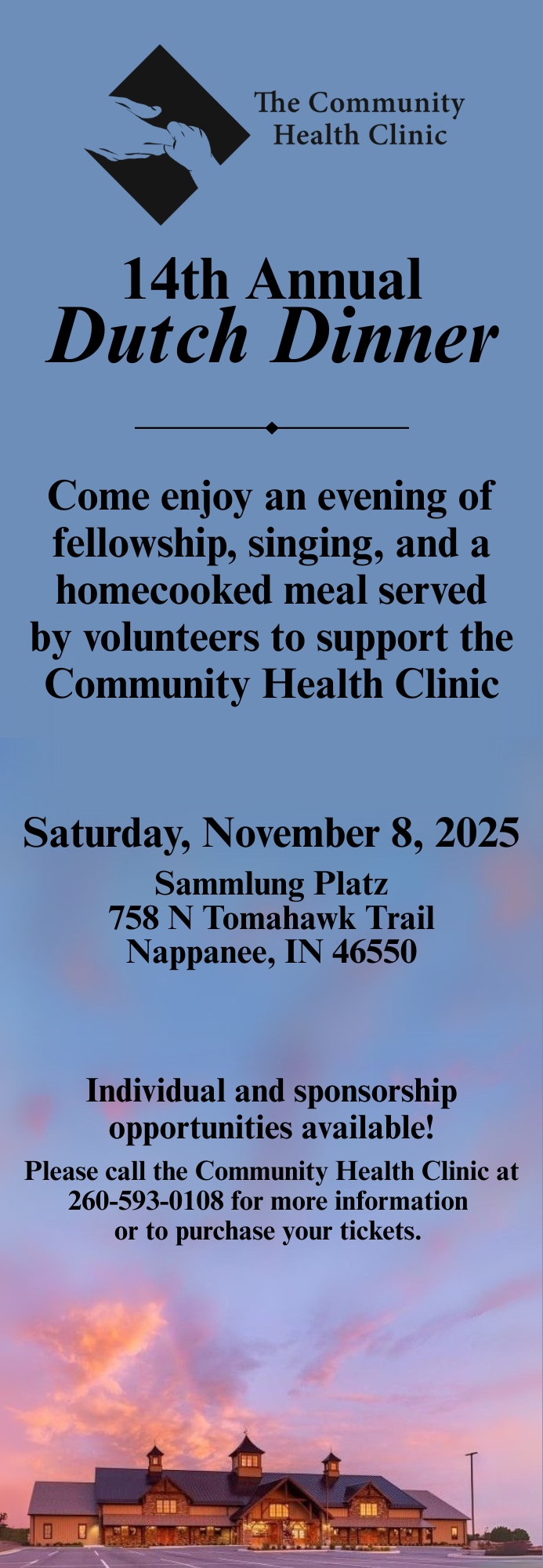 Individual tickets and sponsorship opportunities available. For more information, please contact Jackie Conley at the Community Health Clinic at (260) 593-0108 ext. 100 or by email at development@indianachc.org