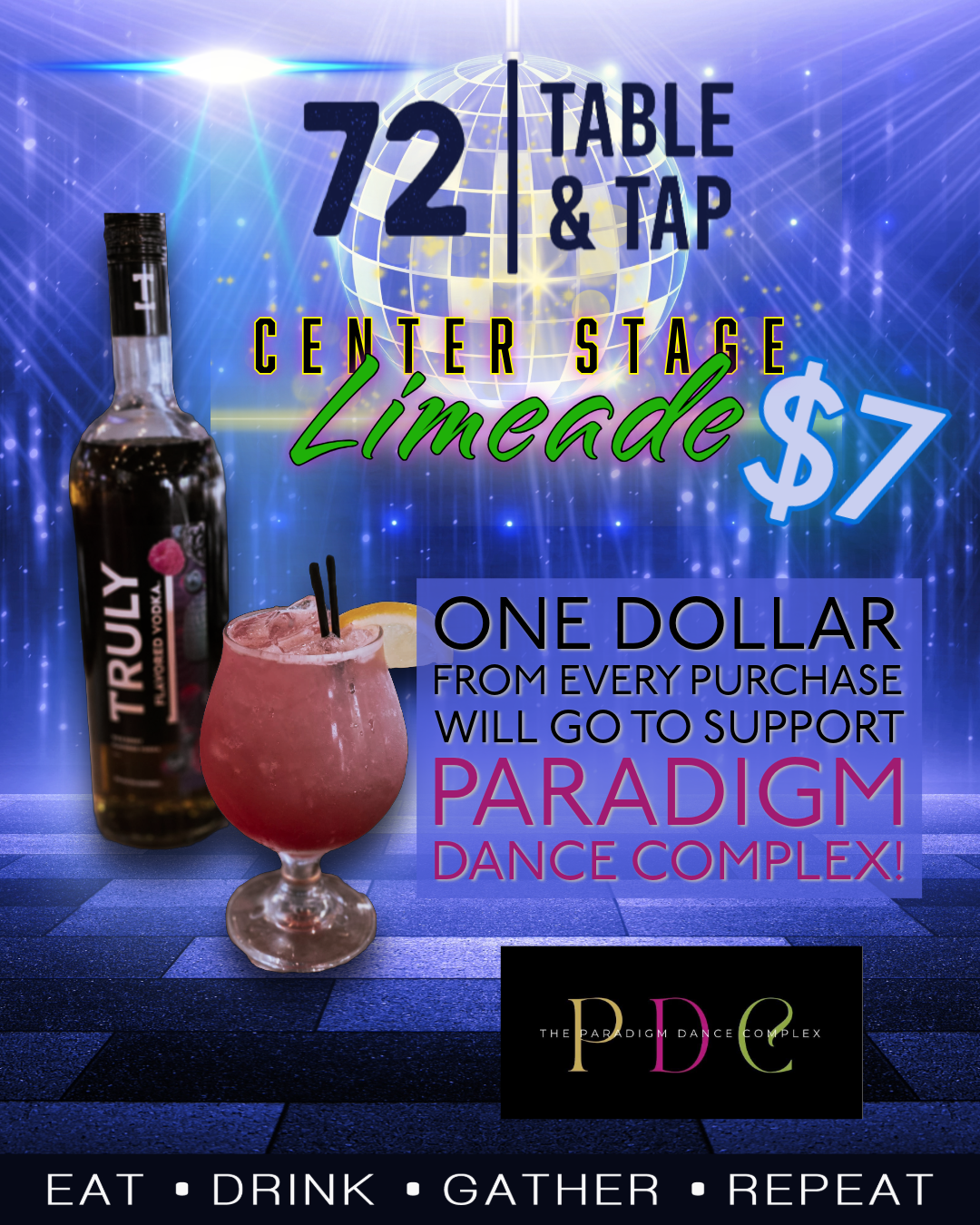 We are proud to partner with Paradigm Dance Complex for this Front & Center Giveback Night. A portion of all sales will go to support their mission to train and promote talented dancers. We will be serving all your favorite food and drinks all night long, so come out and show your support.